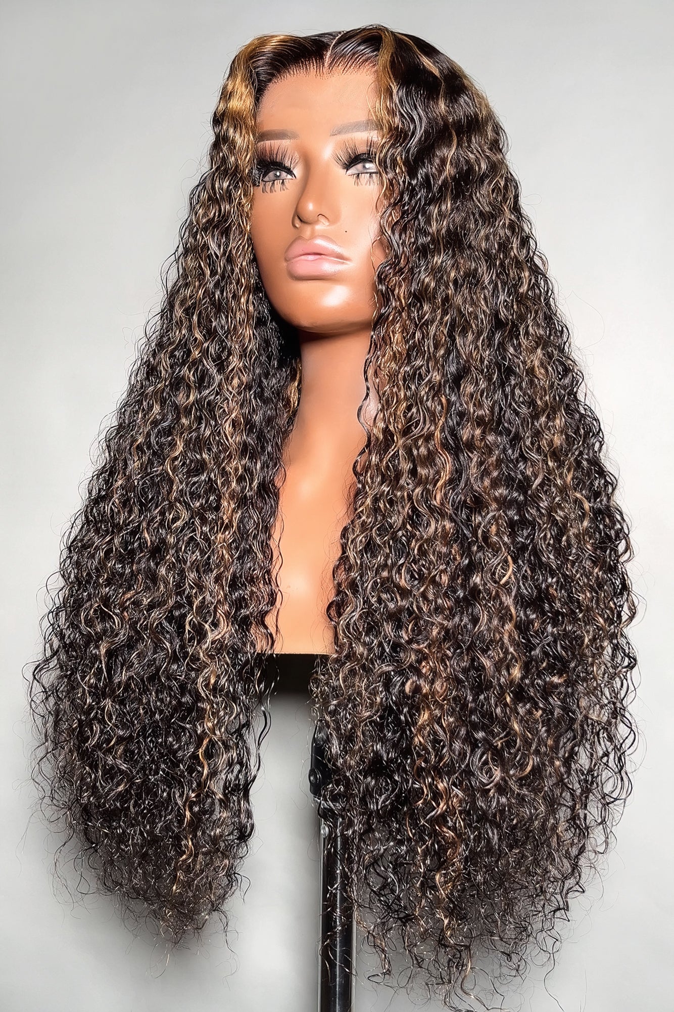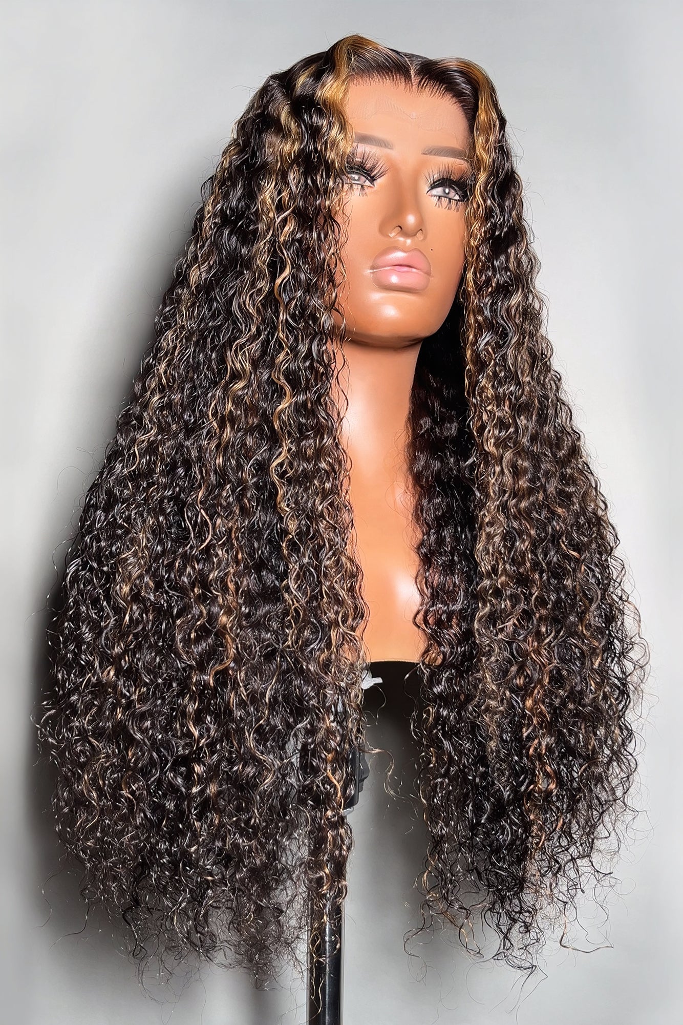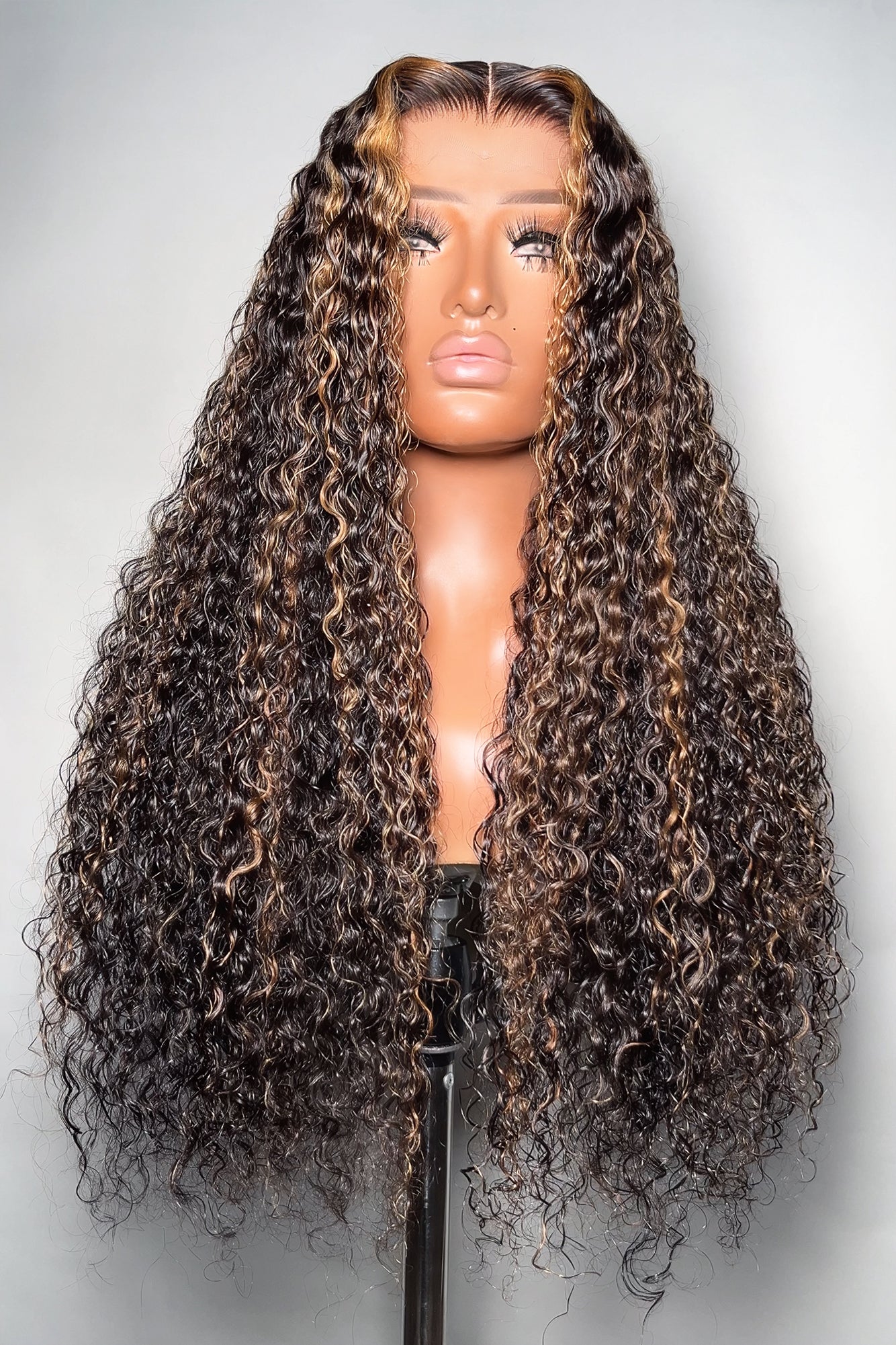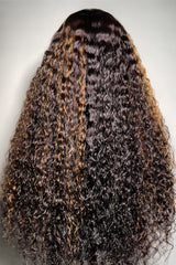 Brown Highlights Curly Glueless 5x5 Closure Lace Wig Beginner Friendly