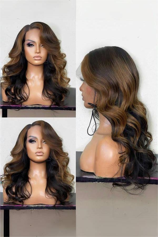 Kes x cynthialumzy 20 inch 13x6 HD Lace front wigs virgin human hair 200 density lace frontal body wave wigs brown highlight color