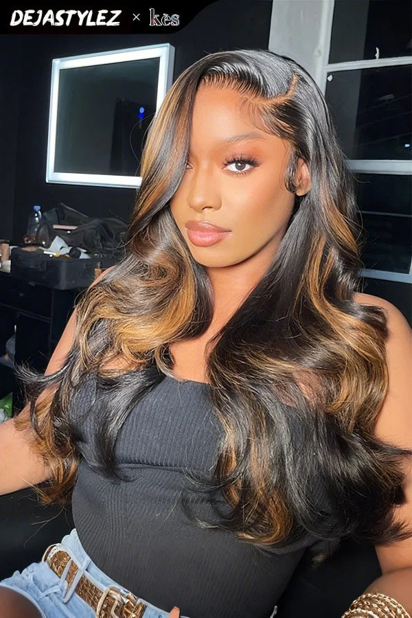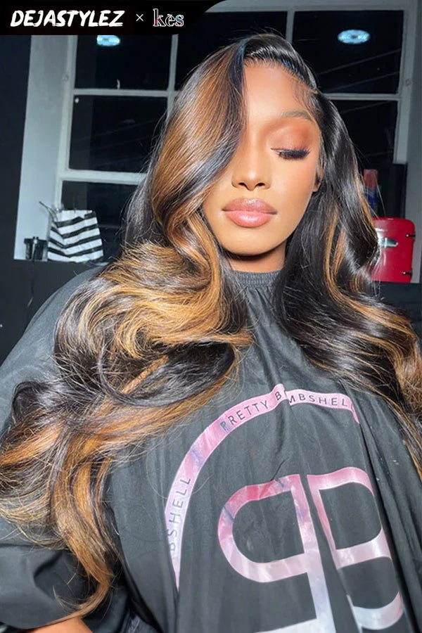 Kes X dejastylez 26 inch 13x6 HD Lace front wigs virgin human hair 200 density lace frontal body wave wigs brown highlight color
