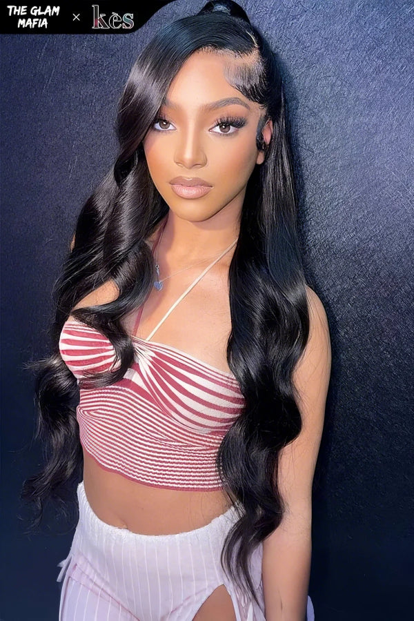 KES X glammedbytracey 26 inch 13x6 HD Lace front wigs virgin human hair 200 density lace frontal body wave wigs natural color