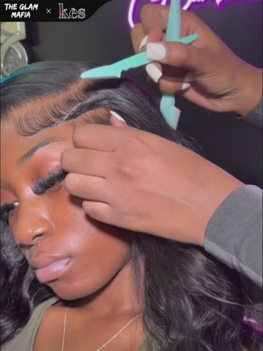 KES X glammedbytracey 26 inch 5x5 Glueless human hair HD lace closure wigs 200% density body wave wigs blue highlight color