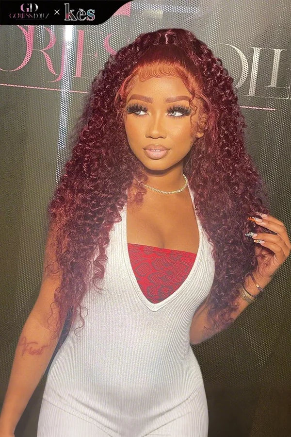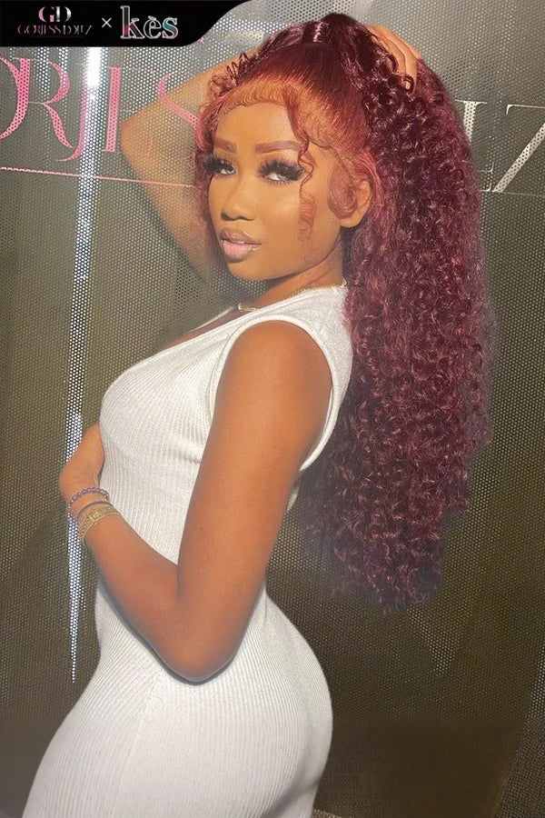Kes x gorjessdollz 24 inch 13x6 HD Lace front wigs virgin human hair 200 density lace frontal curly wave wigs 99j color