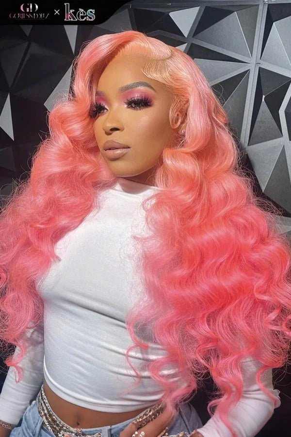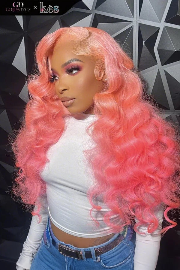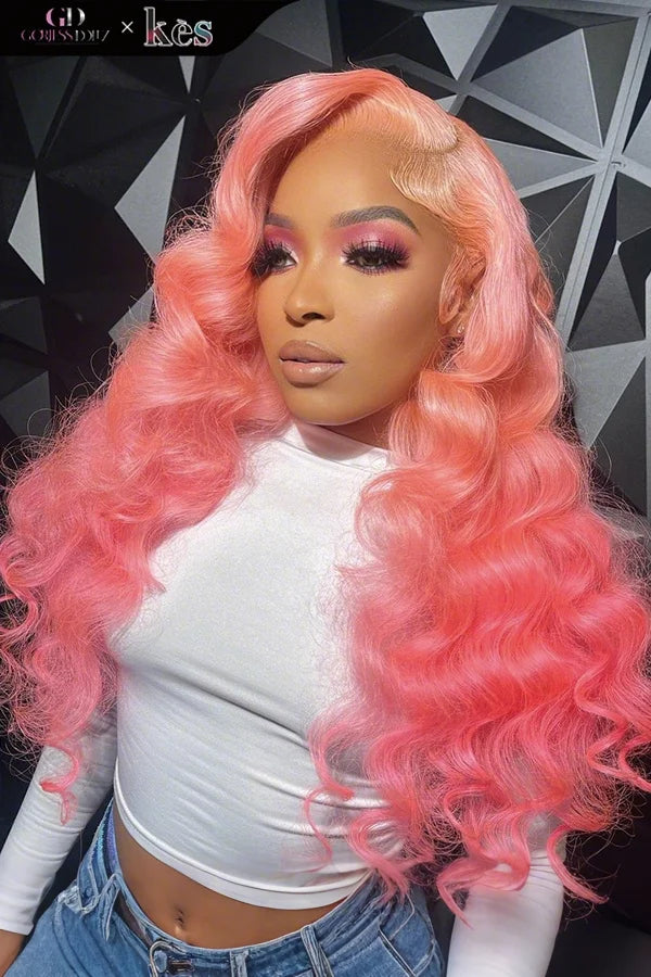Kes x gorjessdollz 24 inch 13x6 HD Lace front wigs virgin human hair 200 density lace frontal loose wave wigs pink color