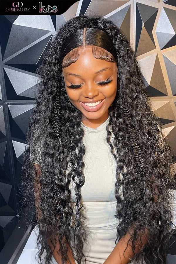 Kes x gorjessdollz 26 inch 13x6 HD Lace front wigs virgin human hair 200 density lace frontal curly wave wigs natural color