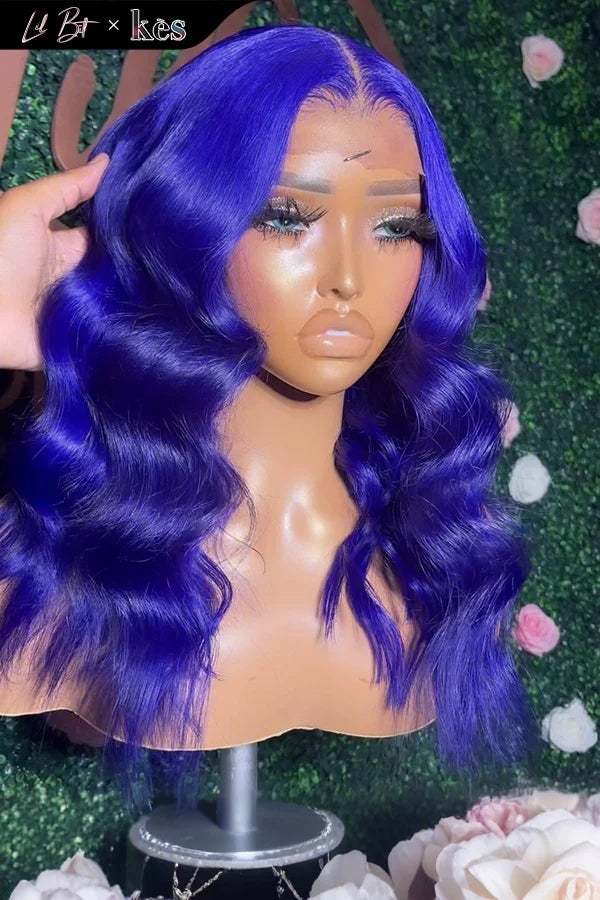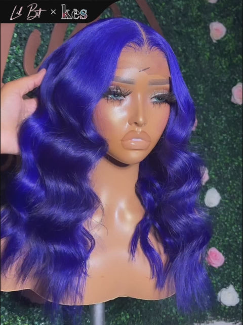 Kes x lilbit_collections 20 inch 5x5 Glueless human hair HD lace closure wigs 200% density body wave wigs blue color
