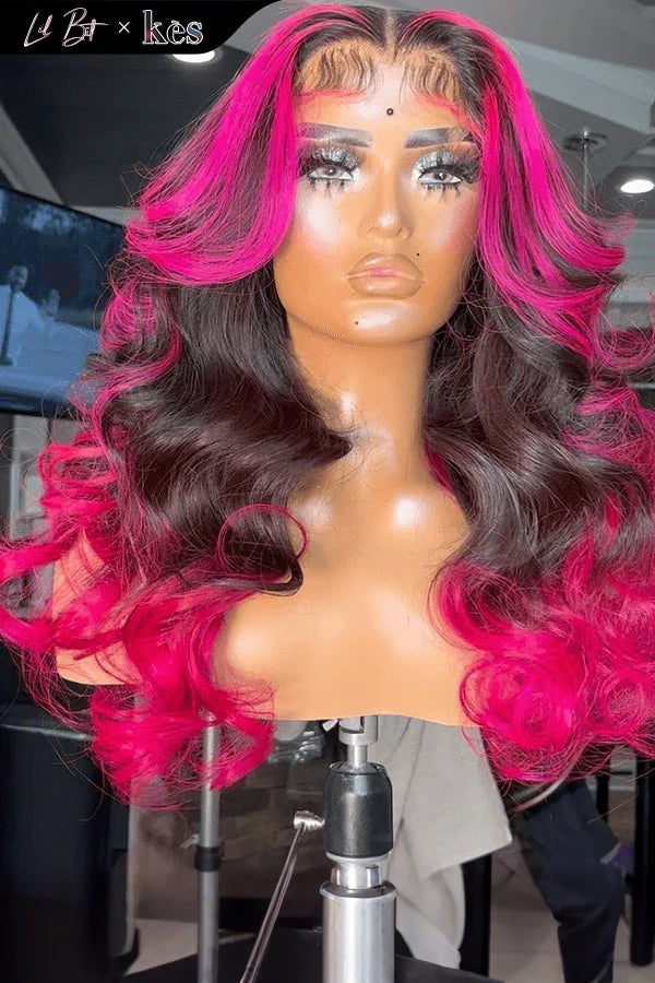 Kes x lilbit_collections 22 inch 5x5 Glueless human hair HD lace closure wigs 200% density body wave wigs purple and black ombre color