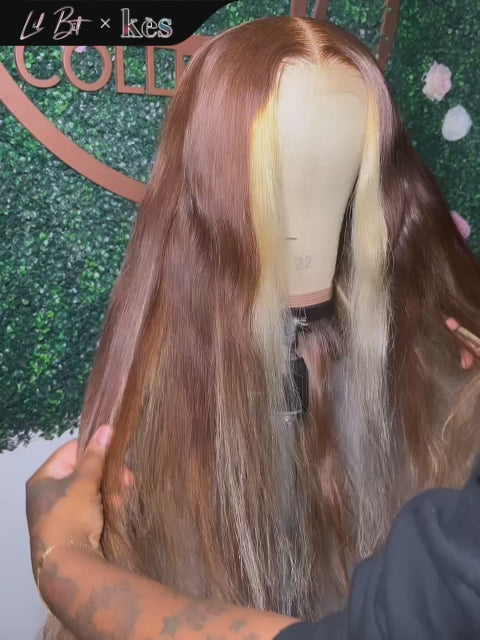 Kes x lilbit_collections 22 inch 5x5 Glueless human hair HD lace closure wigs 200% density straight wigs brown and blonde highlight color