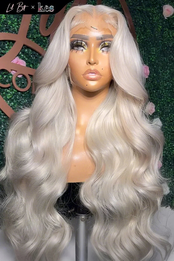 Kes x lilbit_collections 24 inch 5x5 Glueless human hair HD lace closure wigs 200% density body wave wigs silver color