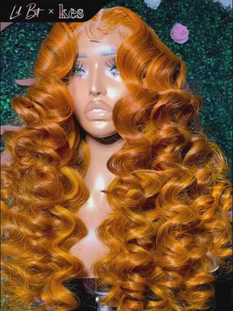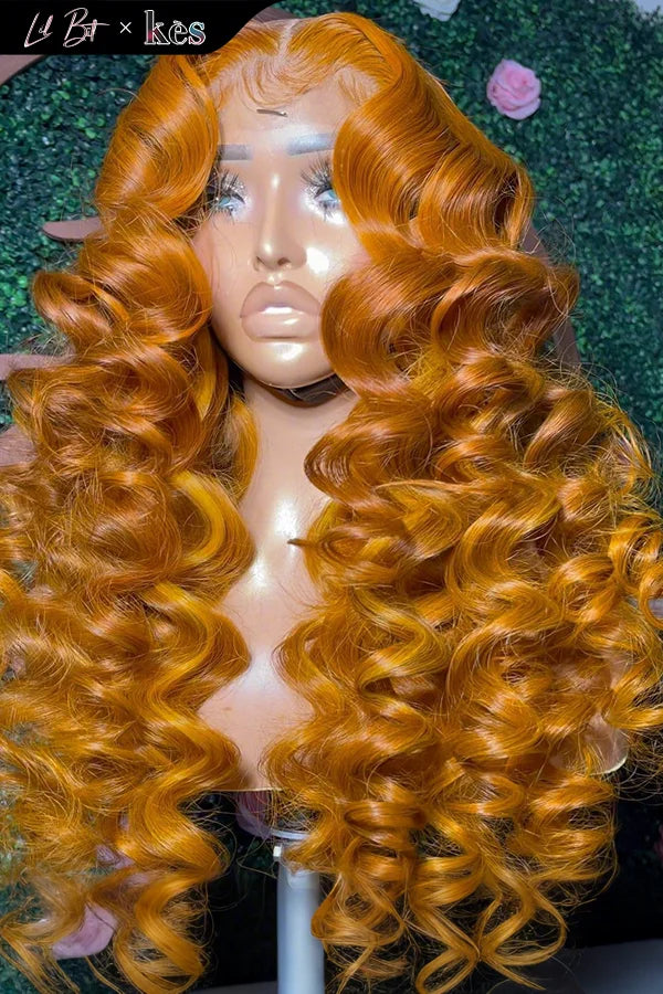 Kes x lilbit_collections 24 inch 5x5 Glueless human hair HD lace closure wigs 200% density loose wave wigs ginger color
