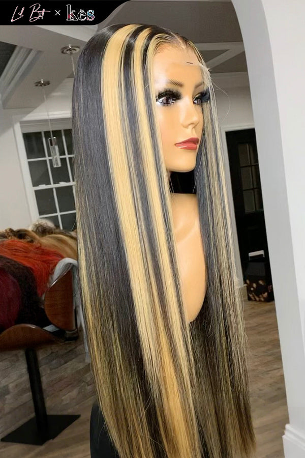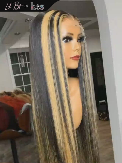 Kes x lilbit_collections 24 inch 5x5 Glueless human hair HD lace closure wigs 200% density straight wigs blonde highlight color