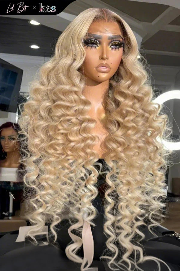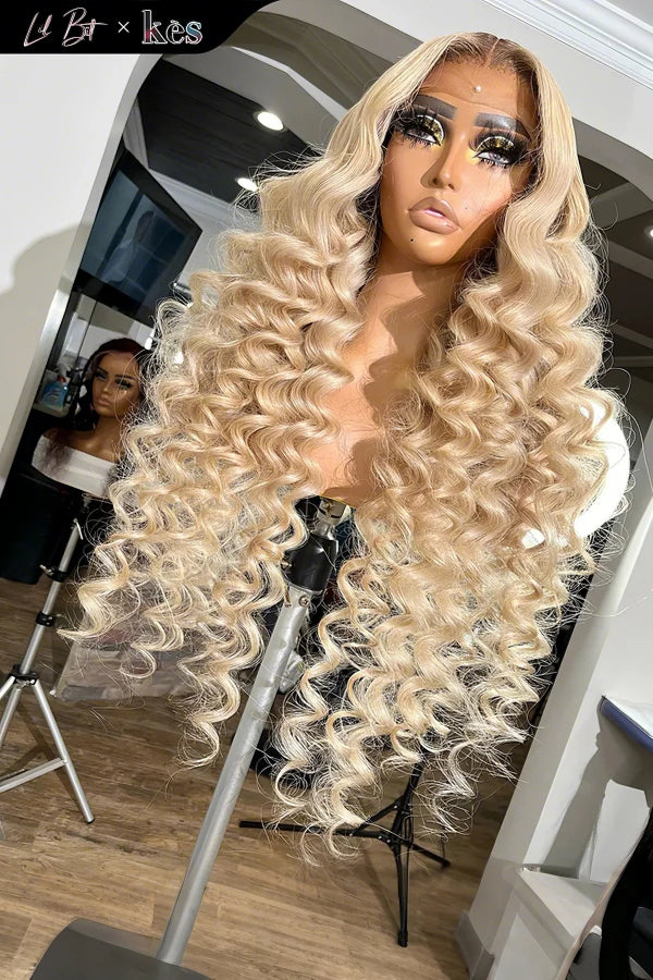 Kes x lilbit_collections 26 inch 5x5 Glueless human hair HD lace closure wigs 200% density loose wave wigs blonde color