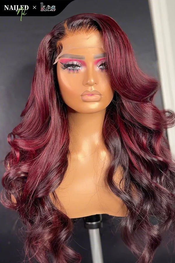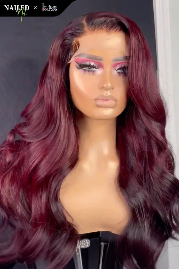 Kes x nailedby.nel 22 inch 5x5 Glueless human hair HD lace closure wigs 200% density body wave wigs 99j color