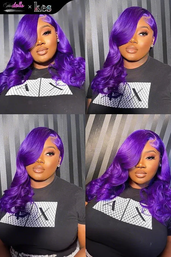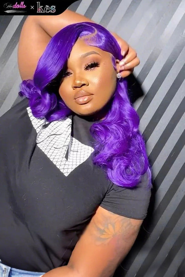 Kes x thedollsproject 20 inch 13x6 HD Lace front wigs virgin human hair 200 density lace frontal body wave wigs purple color