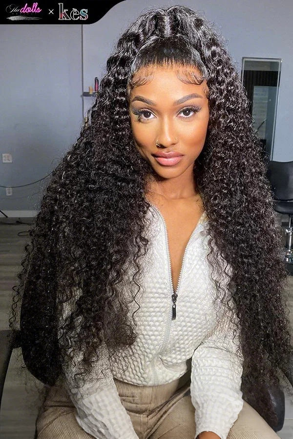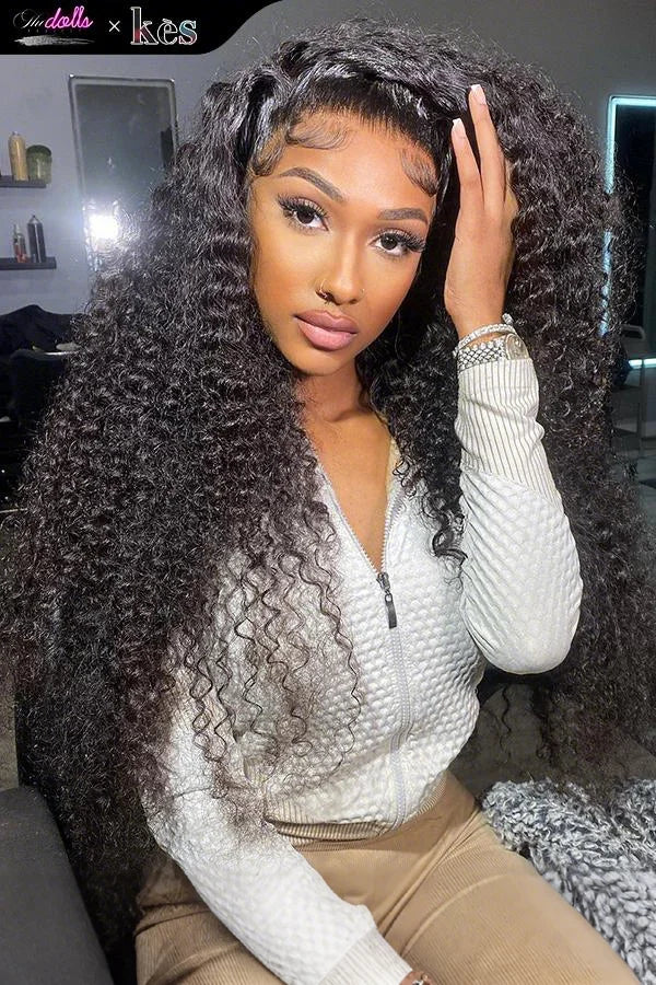 Kes x thedollsproject 30 inch 13x6 HD Lace front wigs virgin human hair 200 density lace frontal curly wave wigs natural color