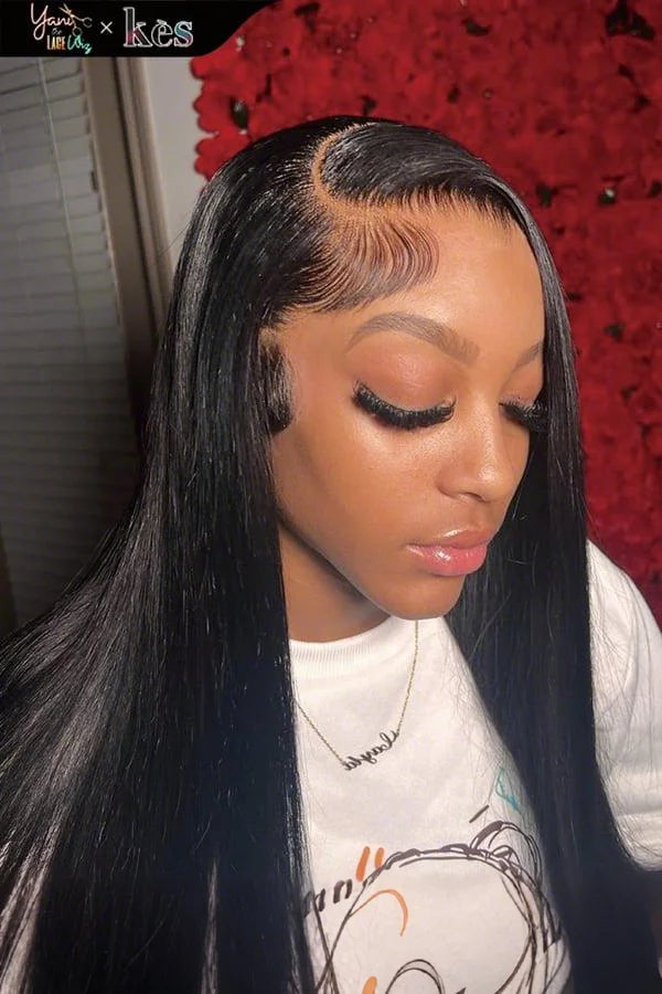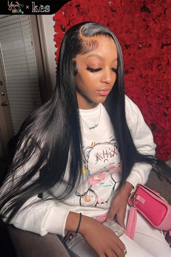 Kes x yanithelacewiz 28 inch 13x6 HD Lace front wigs virgin human hair 200 density lace frontal straight wigs natural color