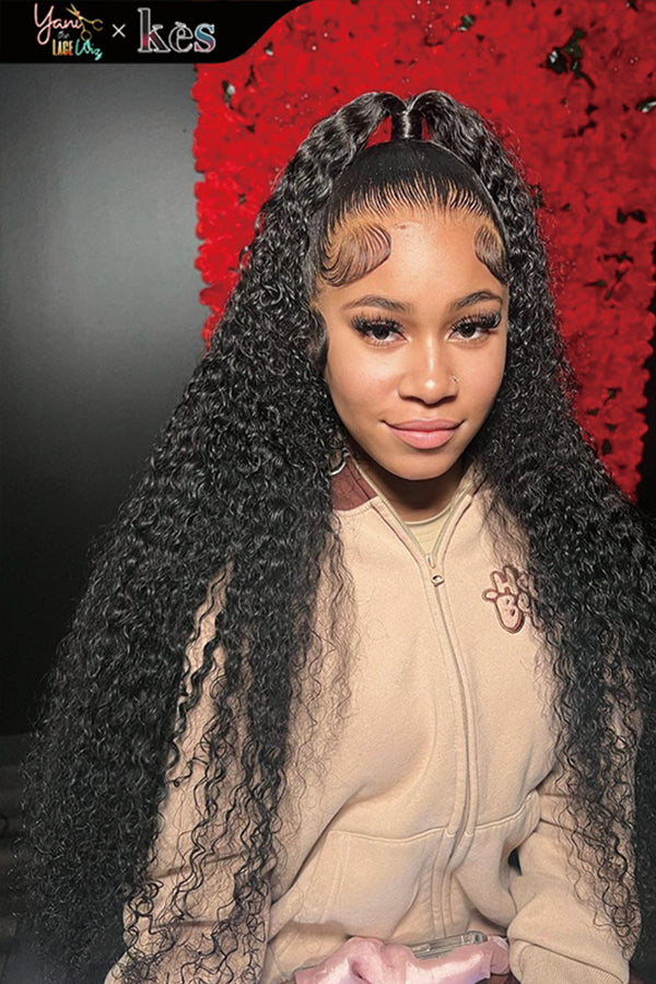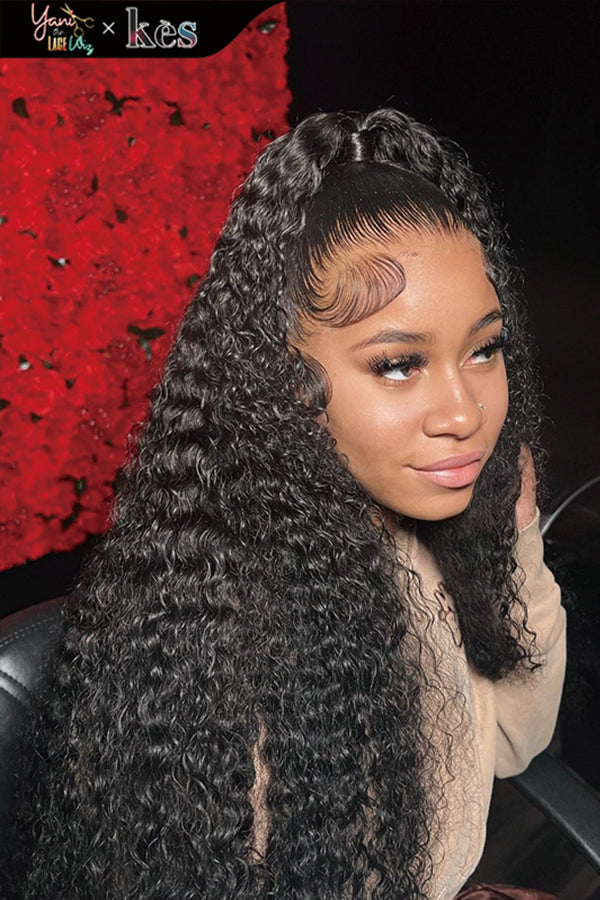 Kes x yanithelacewiz 28 inch 5x5 Glueless human hair HD lace closure wigs 200% density curly wave wigs natural color