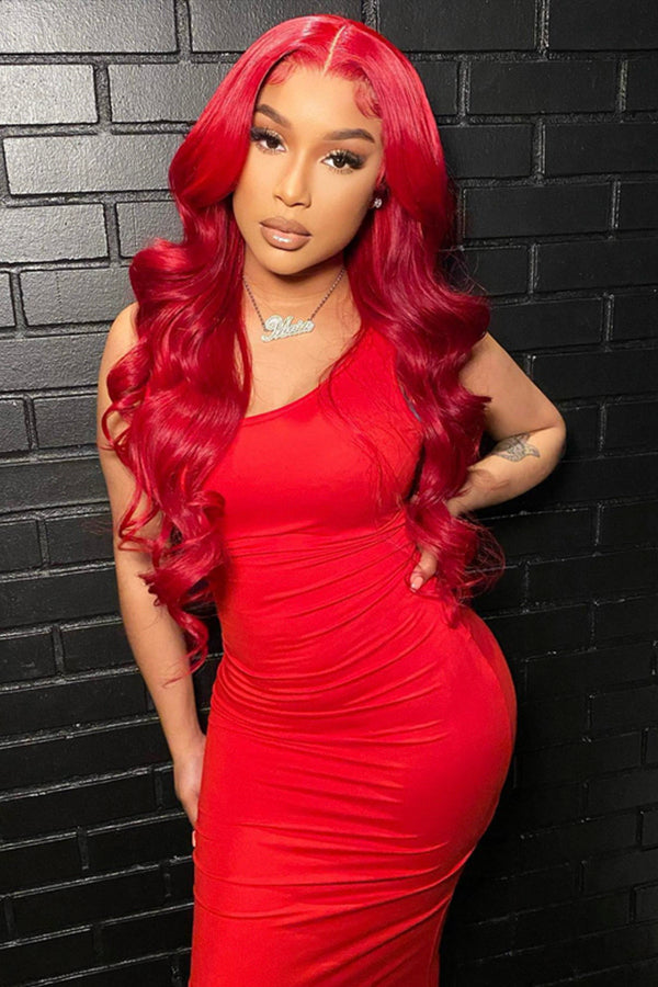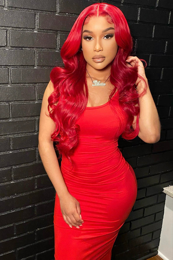 Keswigs 26 inch 13x6 HD Lace front wigs virgin human hair 200 density lace frontal body wave wigs red color