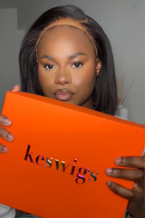 Keswigs 28 inch 13x6 HD Lace front wigs virgin human hair 200 density lace frontal straight wigs brown and blonde highlight