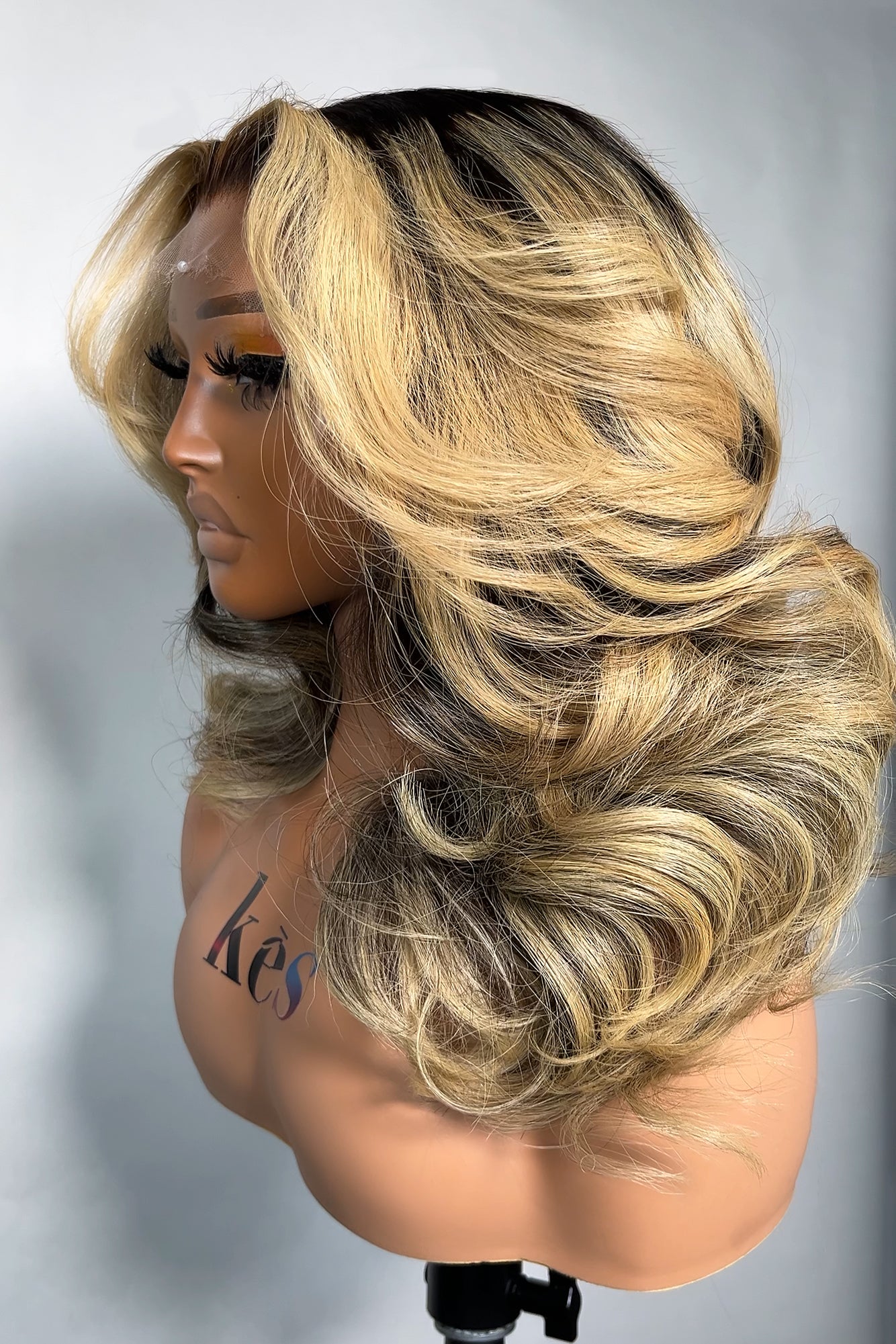 Keswigs 6X6 HD Lace Glueless Wigs Virgin Human Hair 200 Density Heavy Layer Wavy Wigs Custom Blondes Color