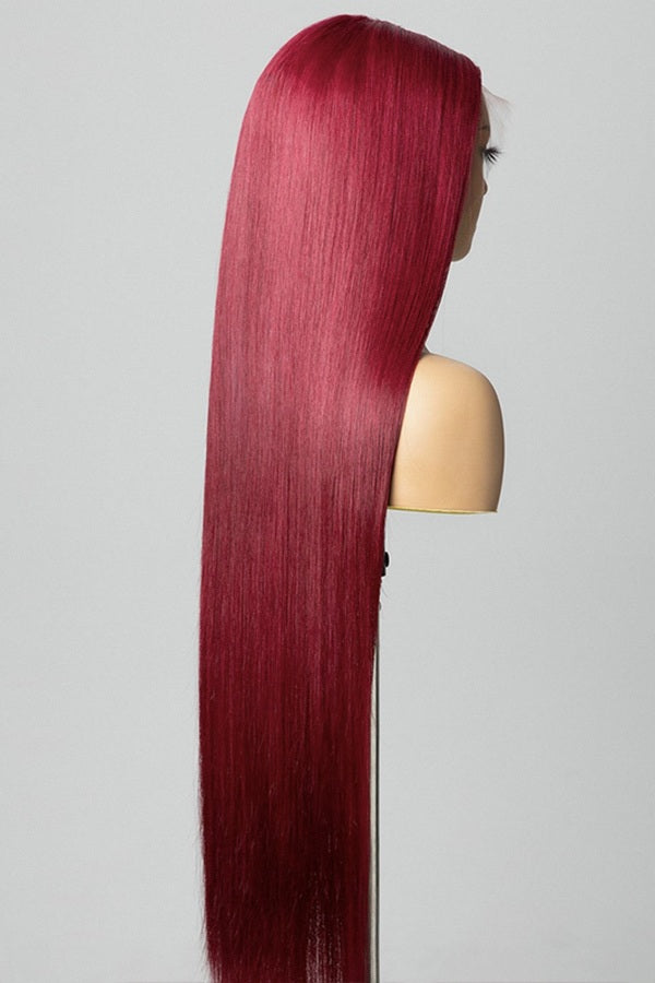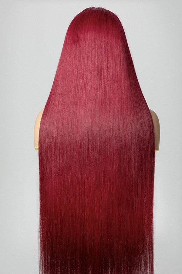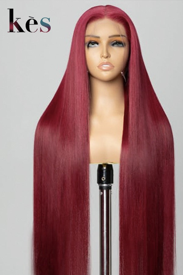 Keswigs Cherry Red Color 200 density straight virgin human hair 13x6 HD Lace front wigs