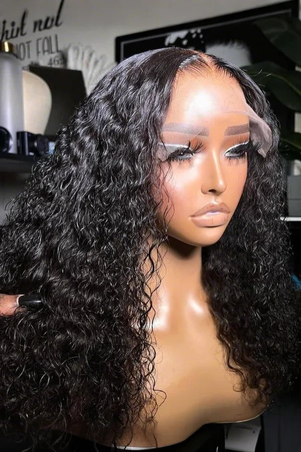 Keswigs curly wave short Bob 4x4 transparent lace closure wig 180% density human hair wigs