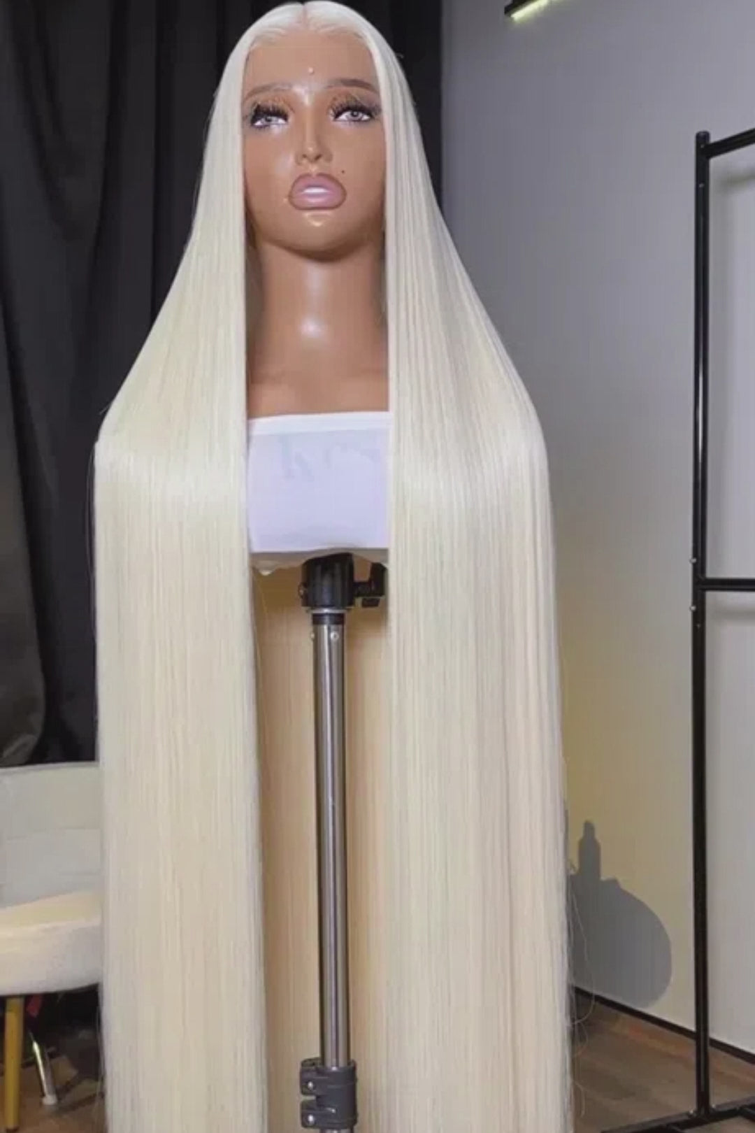 Keswigs HD Full Lace Wigs Virgin Human Hair 300 Density Straight Wigs Platinum Blonde Color