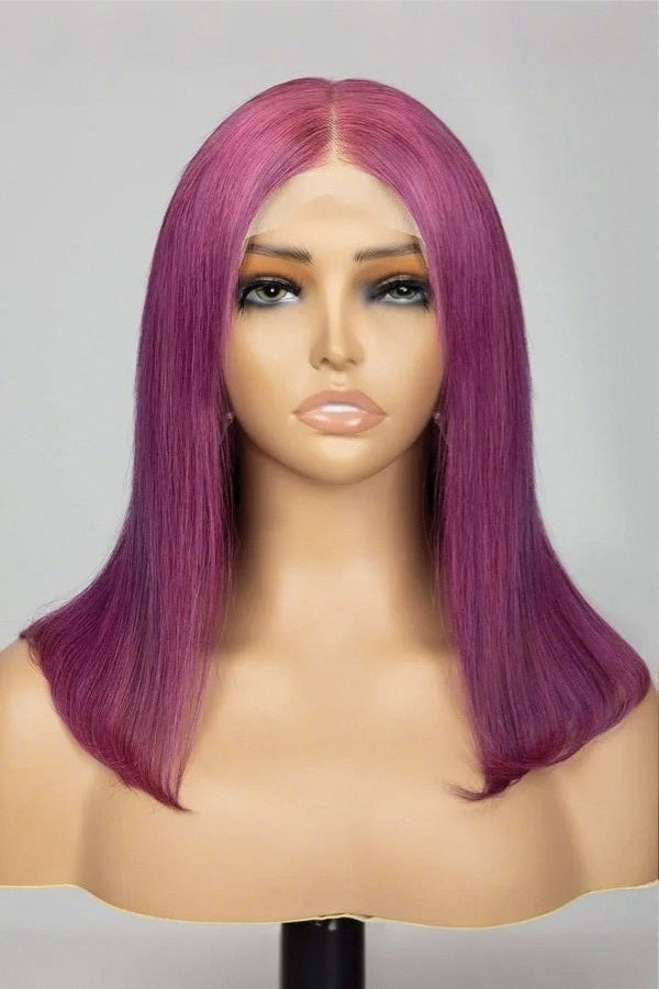 Keswigs Purple color 4x4 transparent lace closure wig 180% density human hair wigs