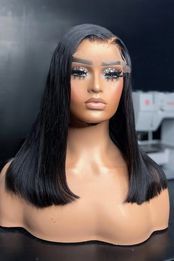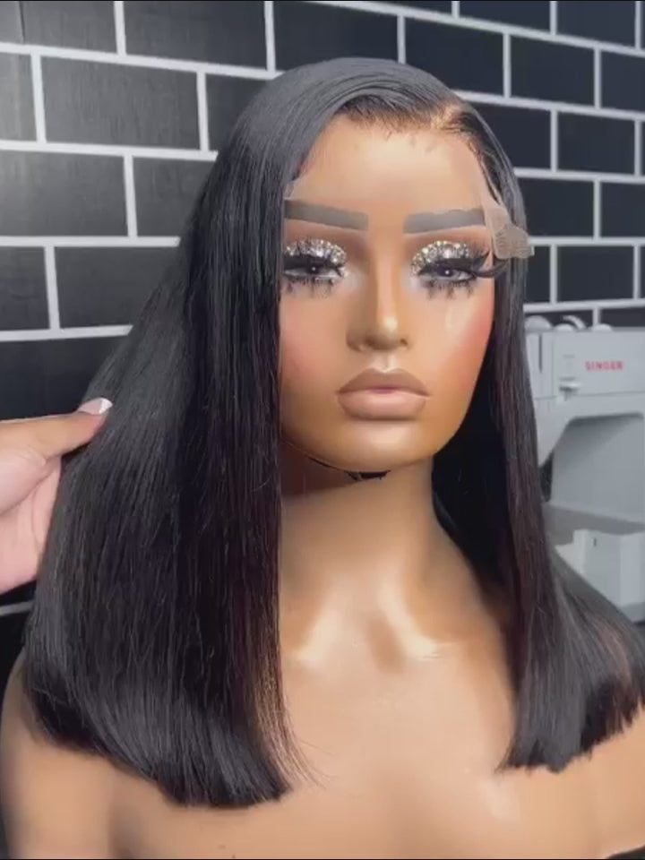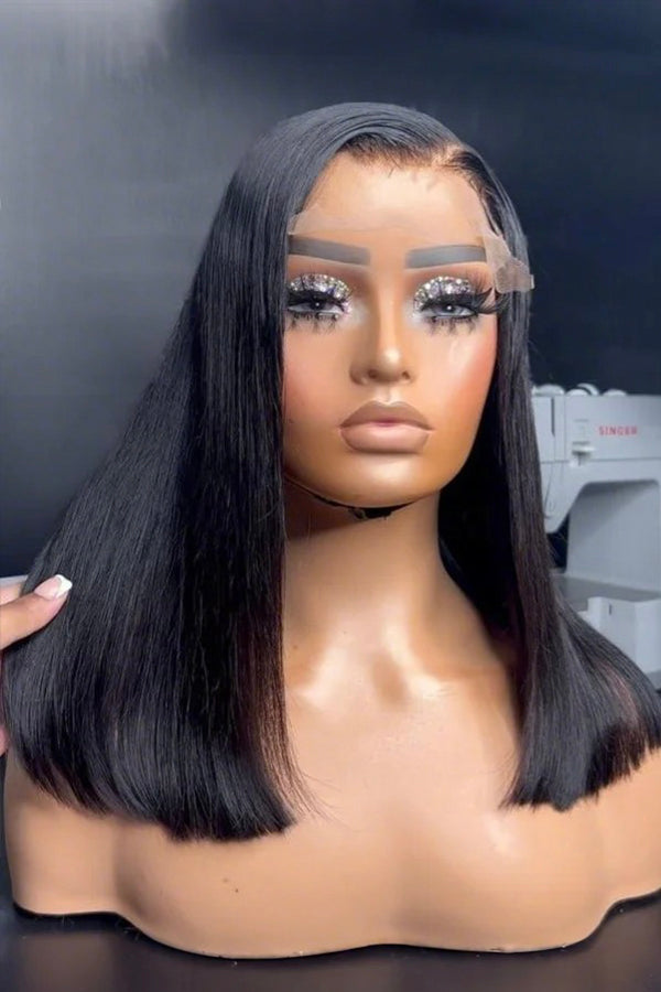 Keswigs straight short Bob 4x4 transparent lace closure wig 180% density human hair wigs